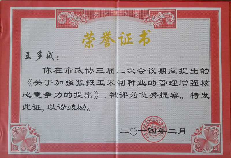 張掖市多成農業有限公司是一家以玉米雜交種生產經營為主的農業科技型民營企業。公司由兩個種子加工廠和1個良種繁育基地及1個優(yōu)質梨示范基地組成。加工廠占地15.8萬平方米,擁有種子加工線3條,檢驗室2個,年生產、加工能力2000萬公斤。有良種示范基地2000畝,優(yōu)質梨示范基地500畝。固定資產總值超億元。
